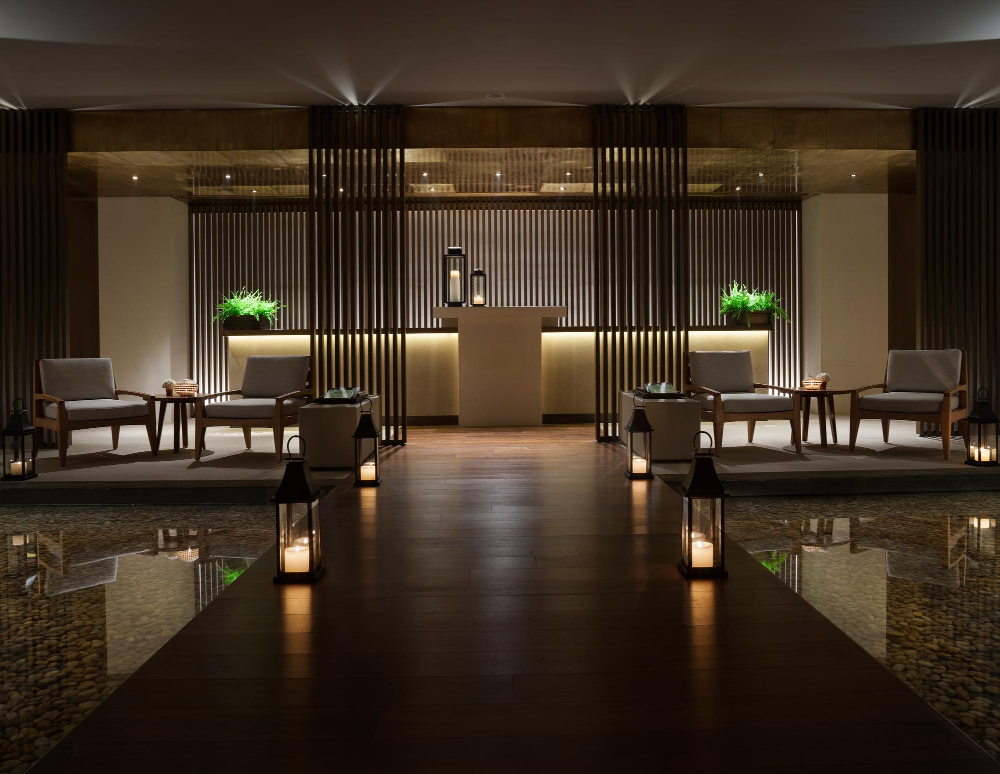 Tranquility is the design goal. Water features, wooden panels, mood lighting, essential oil diffusers, and soft music all contribute to a calming atmosphere. Natural stones, indoor plants, and soft materials like linen and cotton help reinforce the wellness narrative.