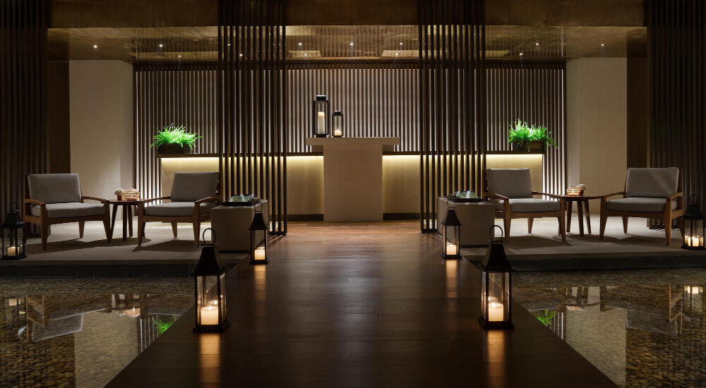 Tranquility is the design goal. Water features, wooden panels, mood lighting, essential oil diffusers, and soft music all contribute to a calming atmosphere. Natural stones, indoor plants, and soft materials like linen and cotton help reinforce the wellness narrative.